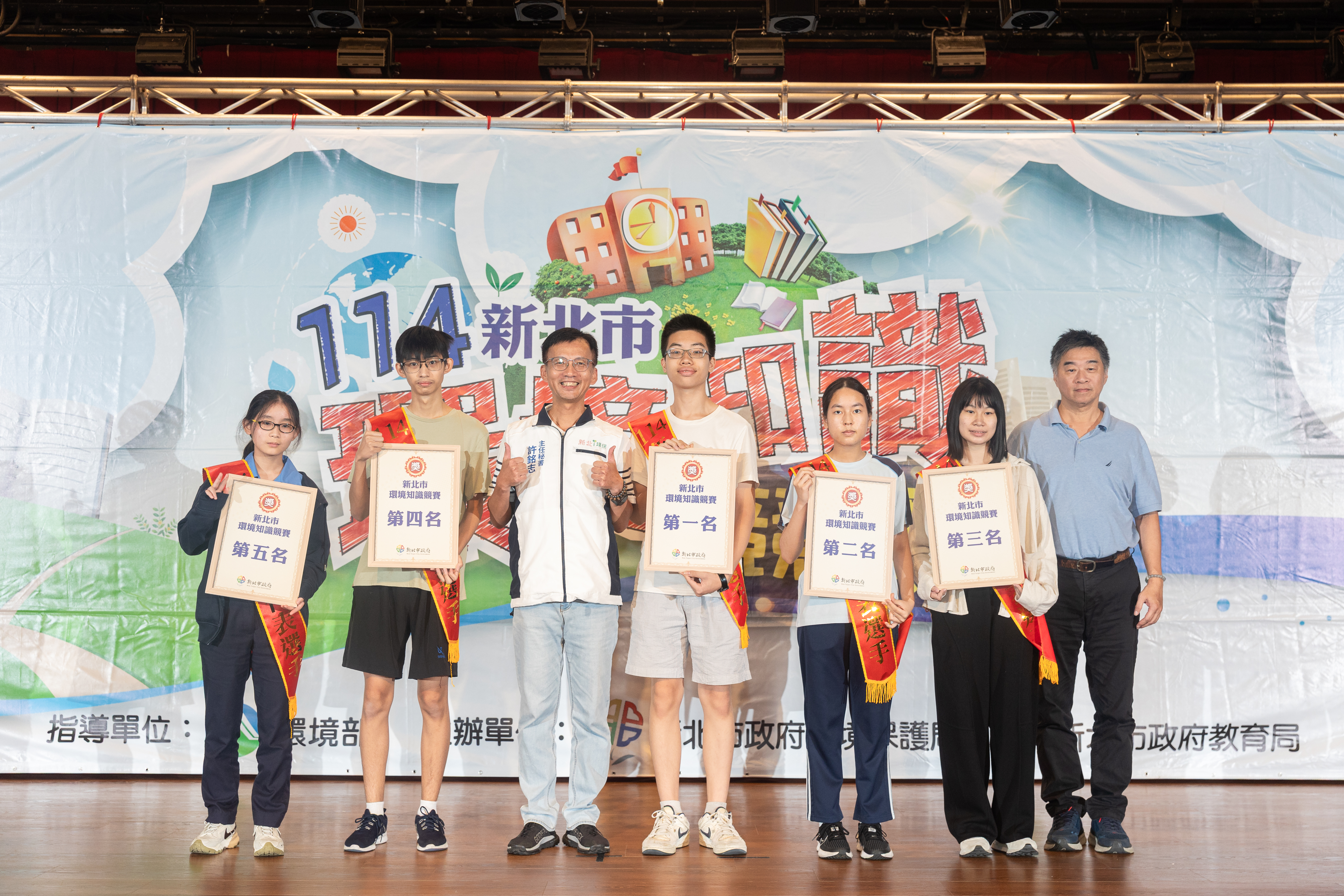 - 【新北市訊】新北市環保局於9月27日(星期六)在新莊輔仁大學舉辦「114年新北市環境知識競賽」,競賽分為學童組、青少年組、青年組及社會組,吸引超過500名選手報名挑戰。比賽當日公布成績,由環保局許銘志主任秘書親自頒獎,各組前5名的環境知識菁英將組成新北代表隊,於11月15日進軍由環境部辦理的全國總決賽,為新北爭取最高榮譽。
