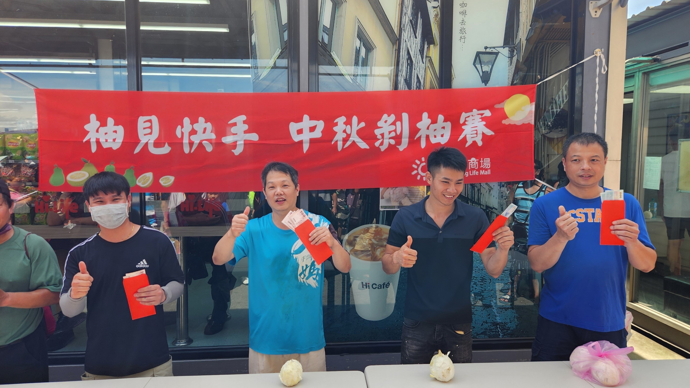 - 【新北市訊】秋意將至,中秋團圓的氣氛漸濃,為了讓大家感受濃厚的過節氣氛,新北市政府高灘地工程管理處與重新觀光市集委外廠商舉辦「柚見快手 中秋剝柚賽」,邀請所有市民朋友一起來同樂,展現剝柚神技。