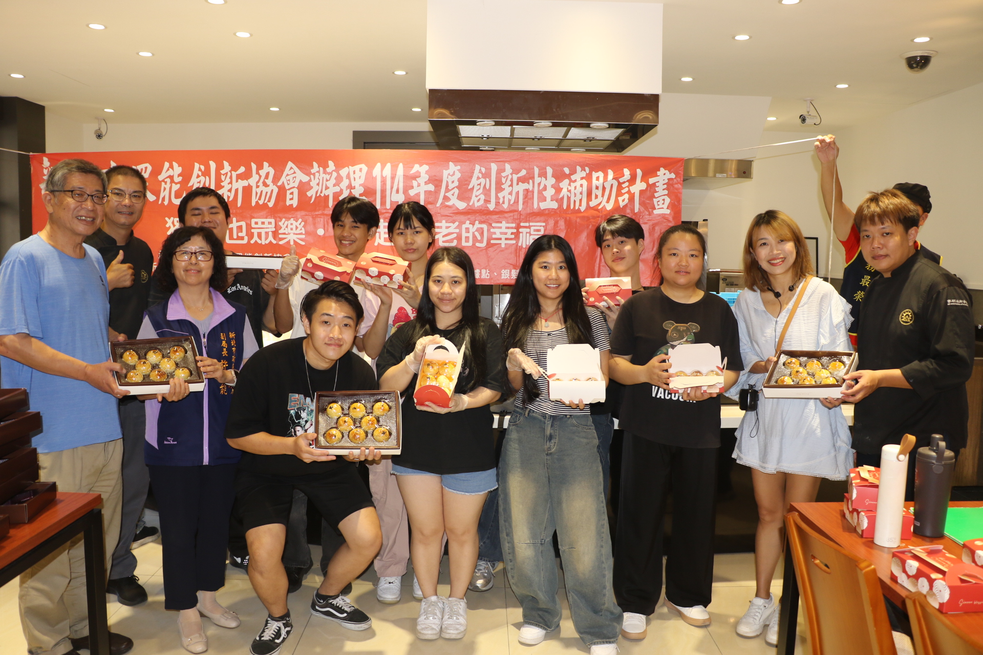 眾能創新協會理事長黃芯愉表示,非常感謝黎明技術學院餐飲管理系主任馮植翎和劉子賓老師等人的協助,帶領20位外籍學生與志工一起製作、包裝,並借用學校專業烤箱烘烤,使每顆蛋黃酥看起來都澄黃飽滿亮麗,吃起來更酥香可口。